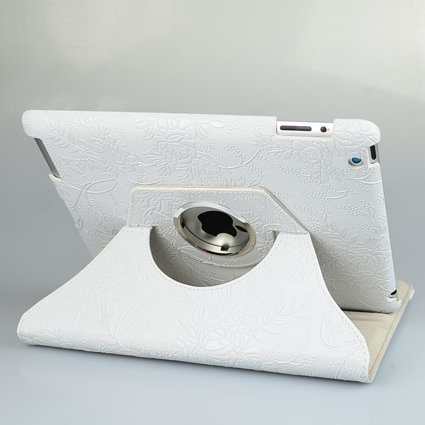Título: SODIAL(R) Funda Flores en Relieve Soporte de Giro 360 Grados para iPad 3/2 con Lapiz Tactil, Soporta Cubierta Inteligente Despertar/Dormir - Blanco